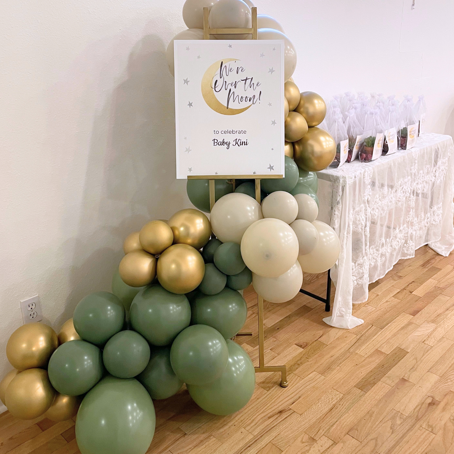 Celebrate the upcoming arrival of your little one with our baby shower package, designed to make your celebration truly special and stress-free. Our package includes everything you need for a heartwarming and memorable gathering, from simple decorations in dusty purple, sage, beige and gold to engaging games, delectable snacks and thoughtful party favors. We handle all the details, so you can focus on enjoying this precious moment with loved ones.